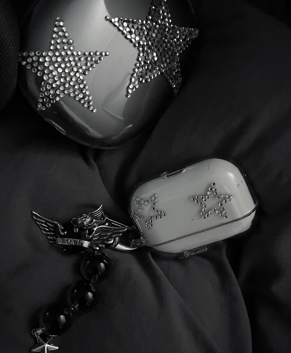 별 모양 큐빅이 박힌 하드 에어팟 케이스 입니다.