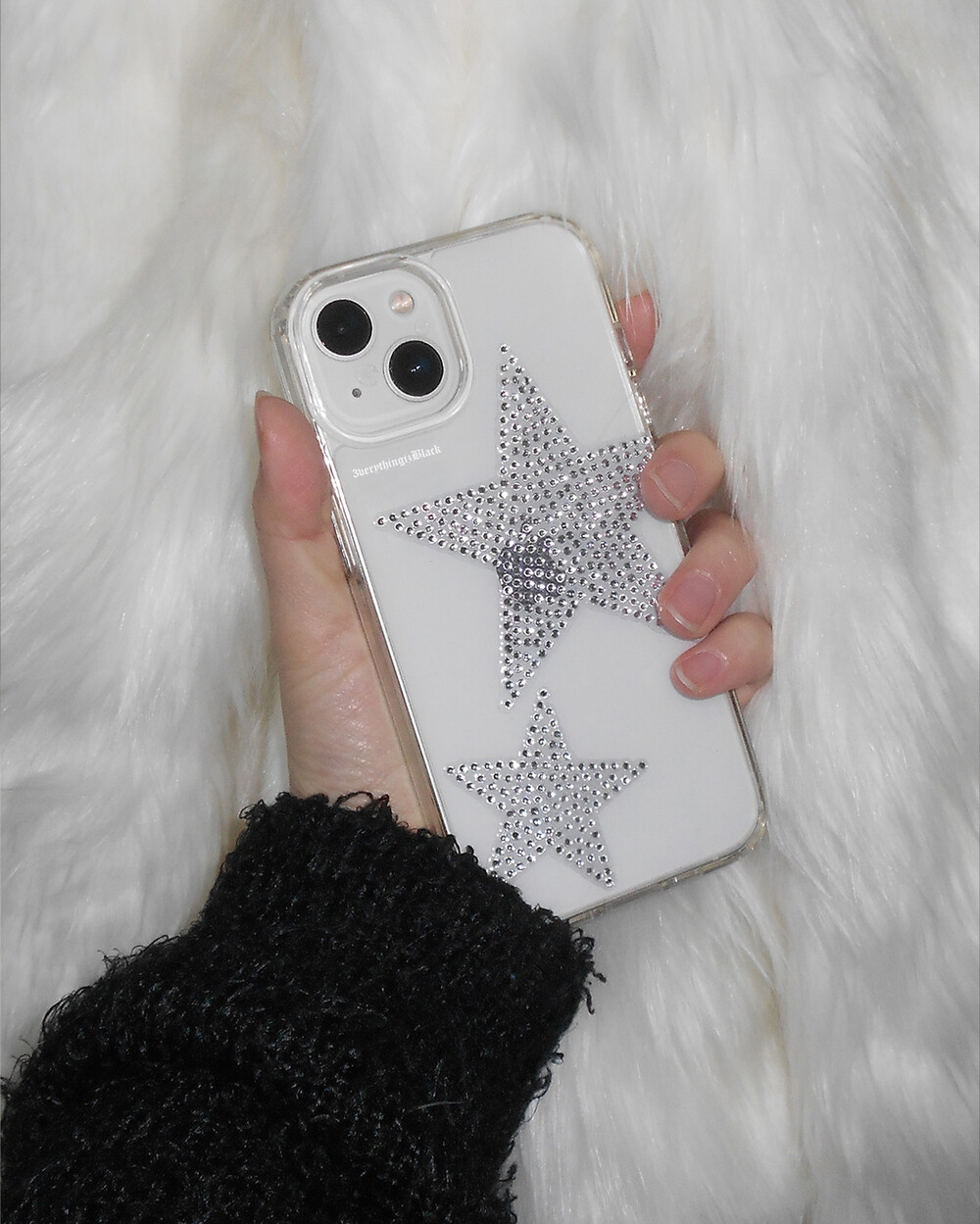 별 모양 큐빅이 박힌 젤하드 폰 케이스 입니다.