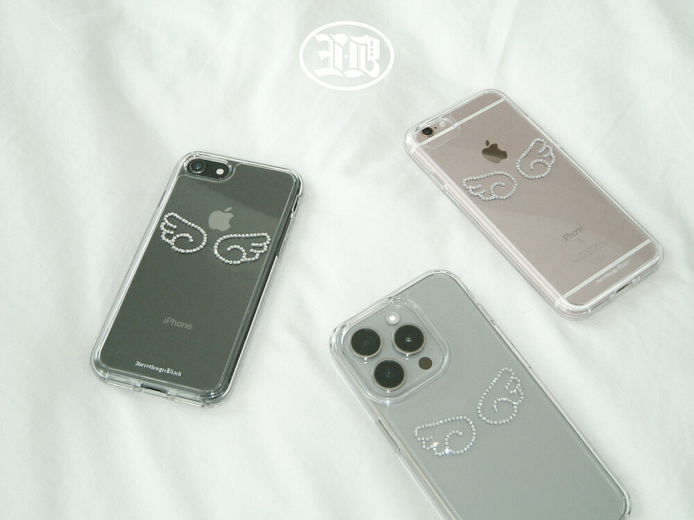 날개 모양 큐빅이 박힌 젤하드 폰 케이스 입니다.