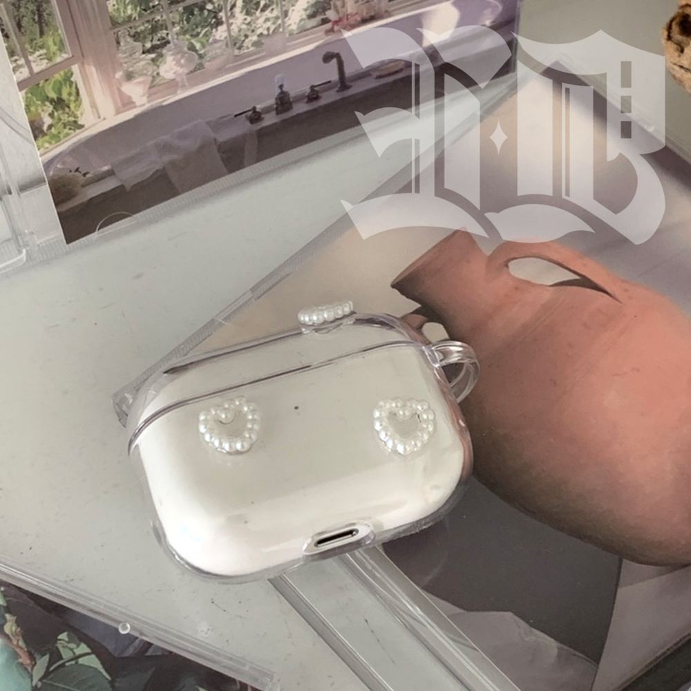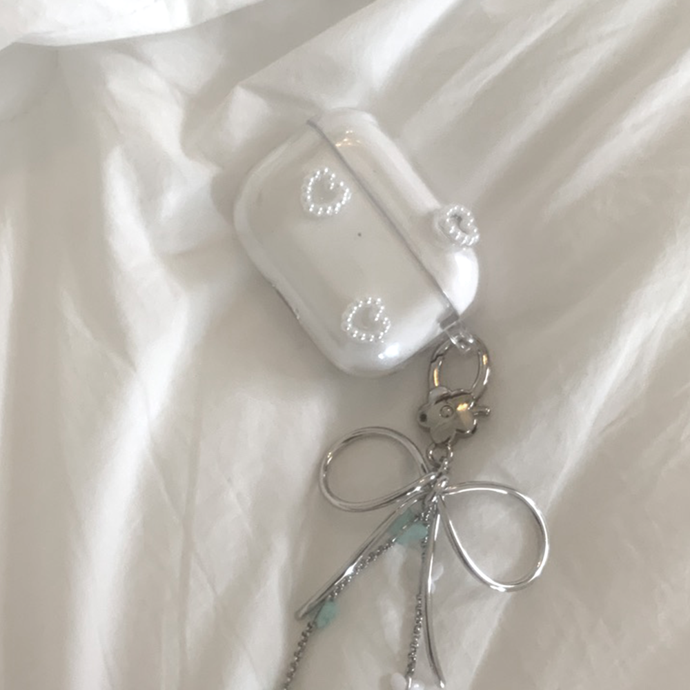 하트 비즈 모양 파츠가 붙여진 케이스 입니다.
