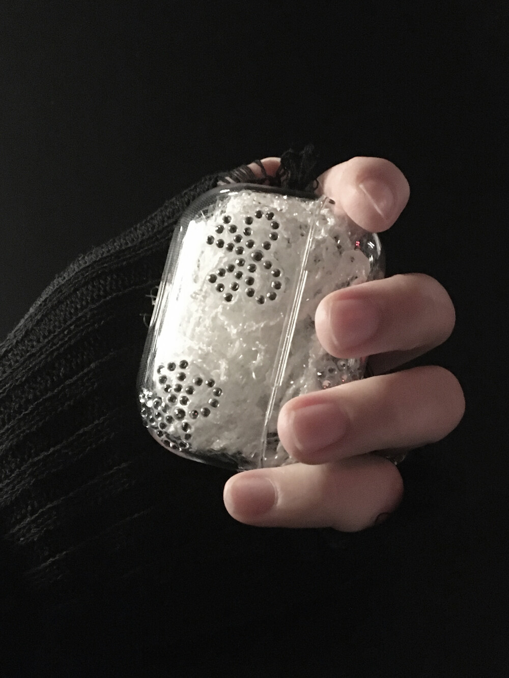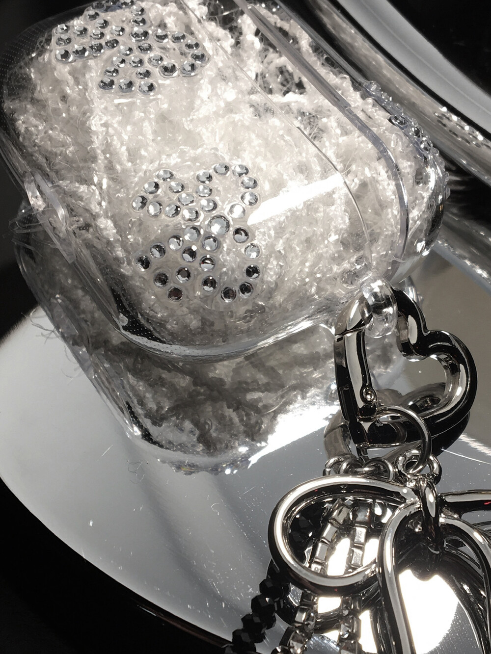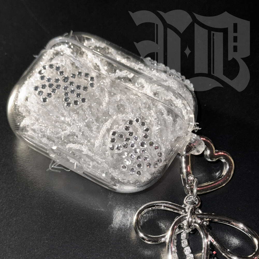 리본 모양 큐빅이 박힌 하드 에어팟 케이스 입니다.
