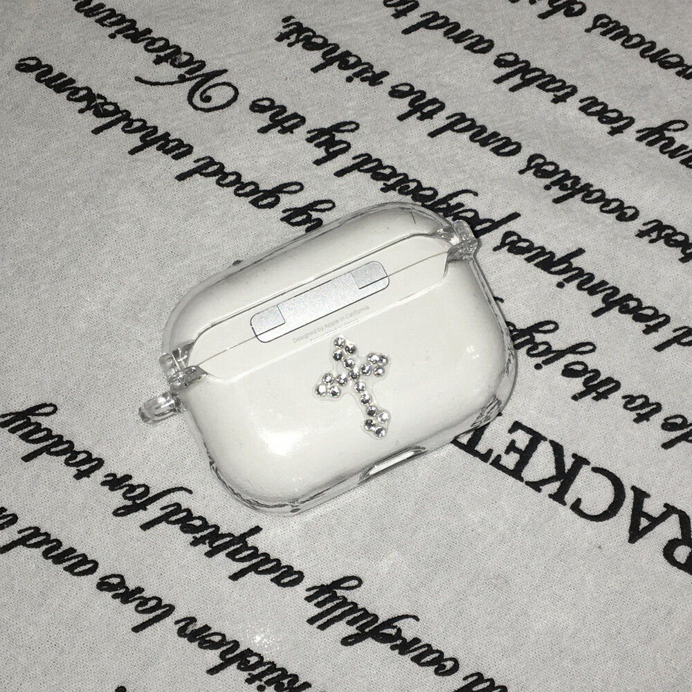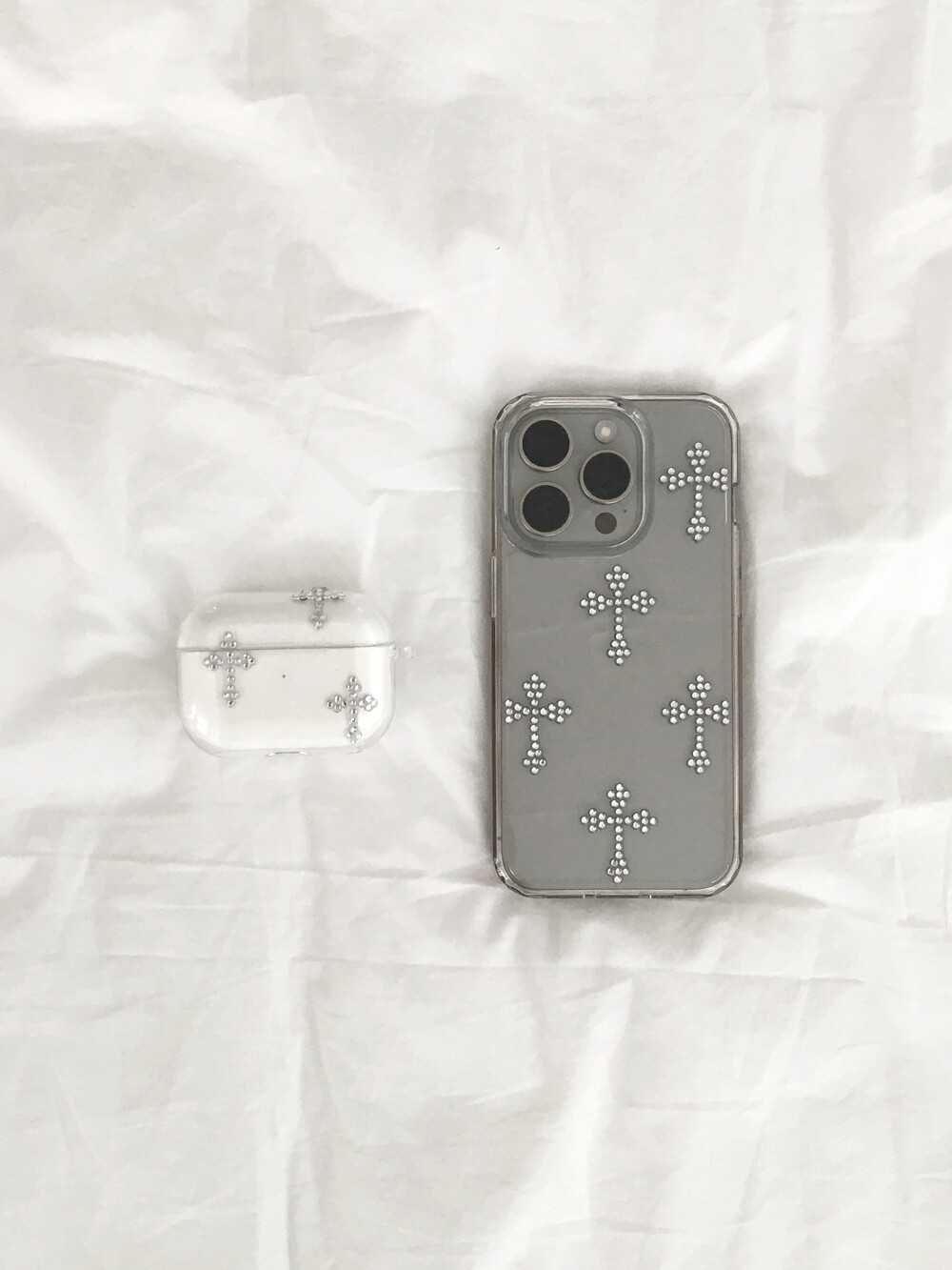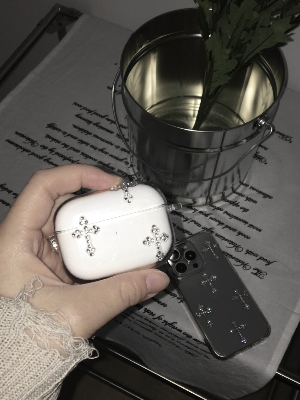 십자가 모양 큐빅이 박힌 하드 에어팟 케이스 입니다.