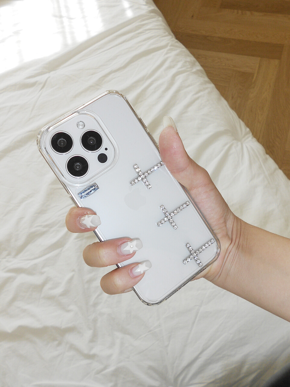 십자가 큐빅 파츠가 붙여진 케이스 입니다.