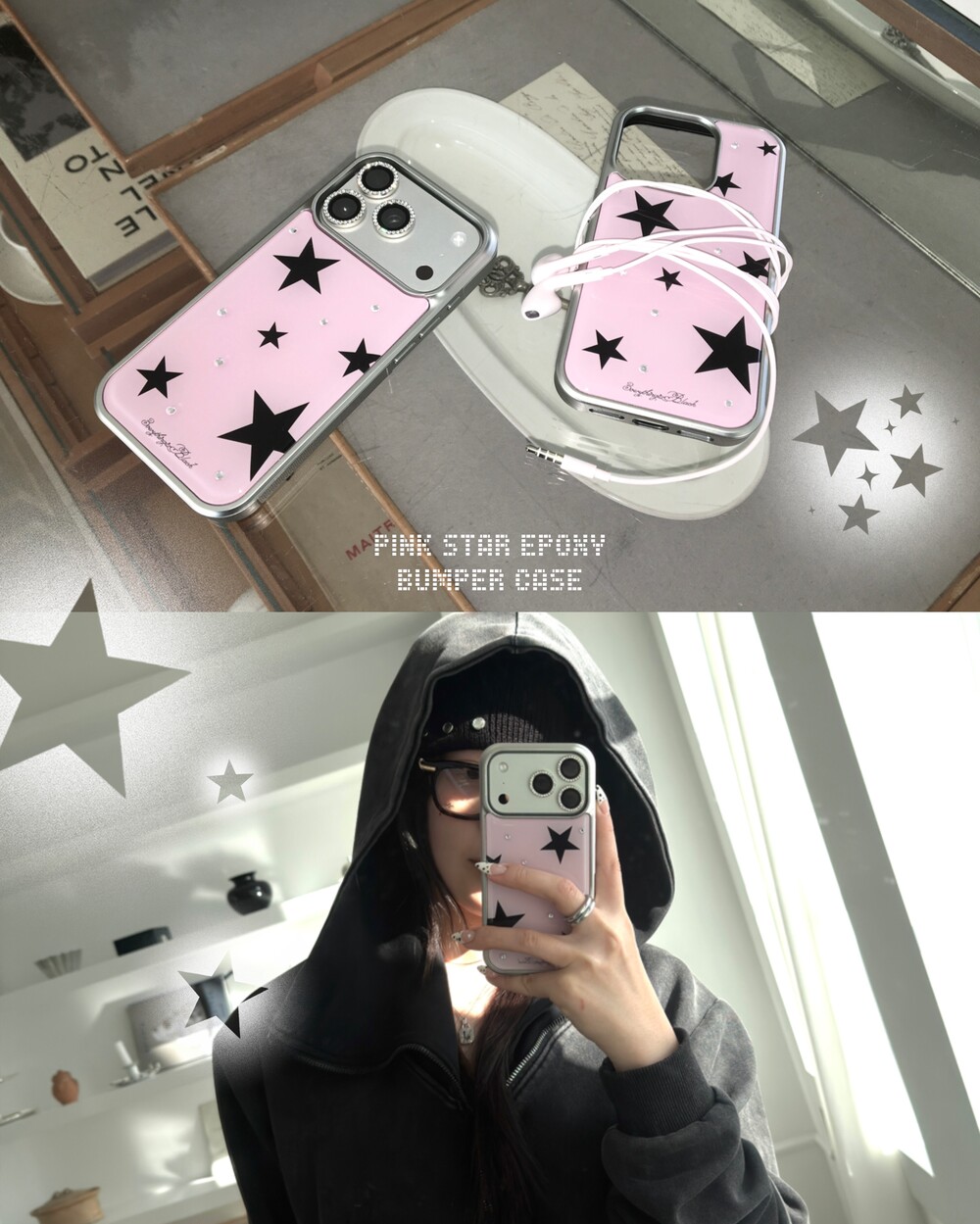black star + cubic 실버 에폭시 범퍼케이스 입니다.