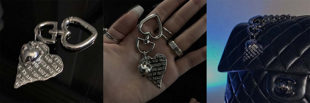 레터링 하트가 달린 러블리한 키링입니다.