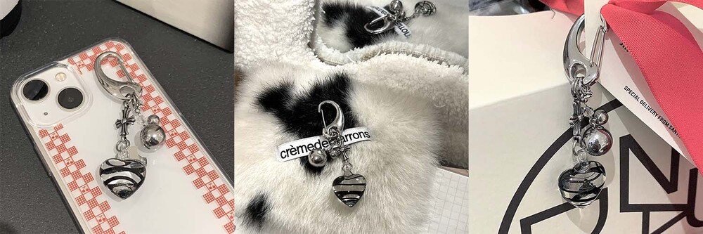 유리 하트와 볼이 포인트인 Pong Pong 키링입니다.