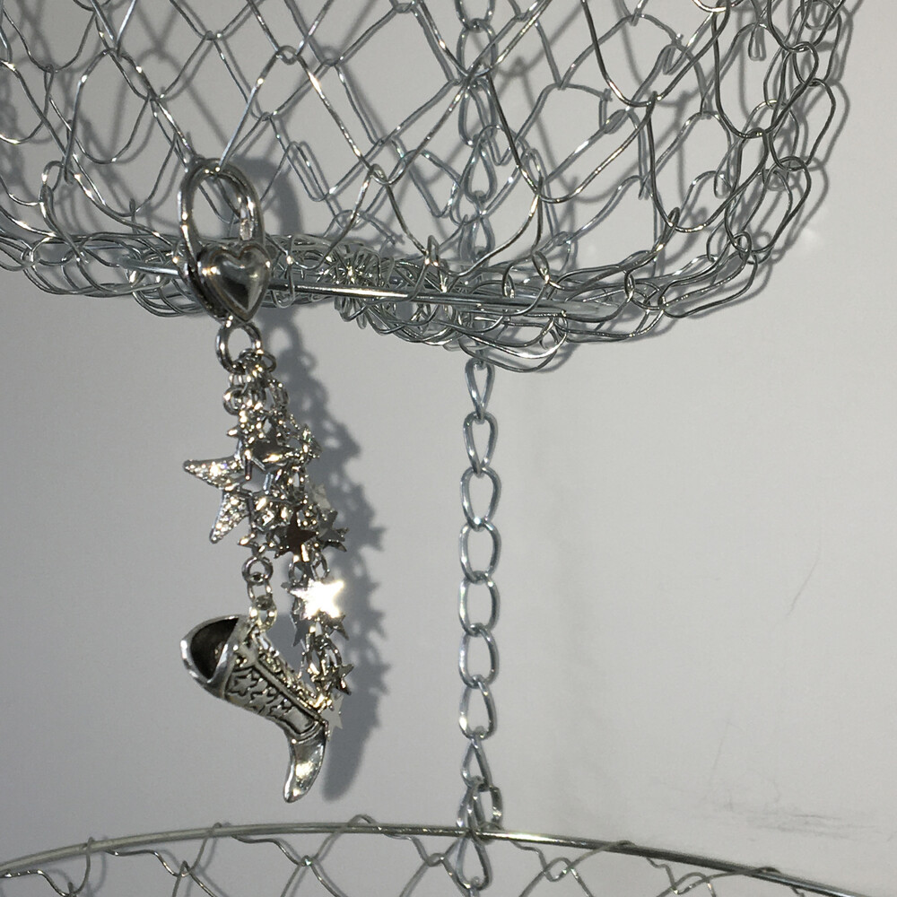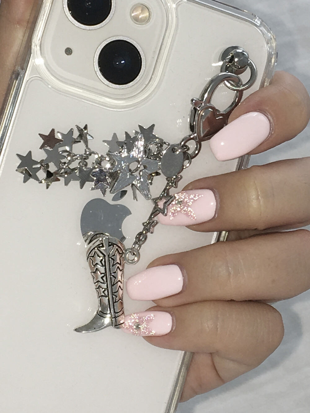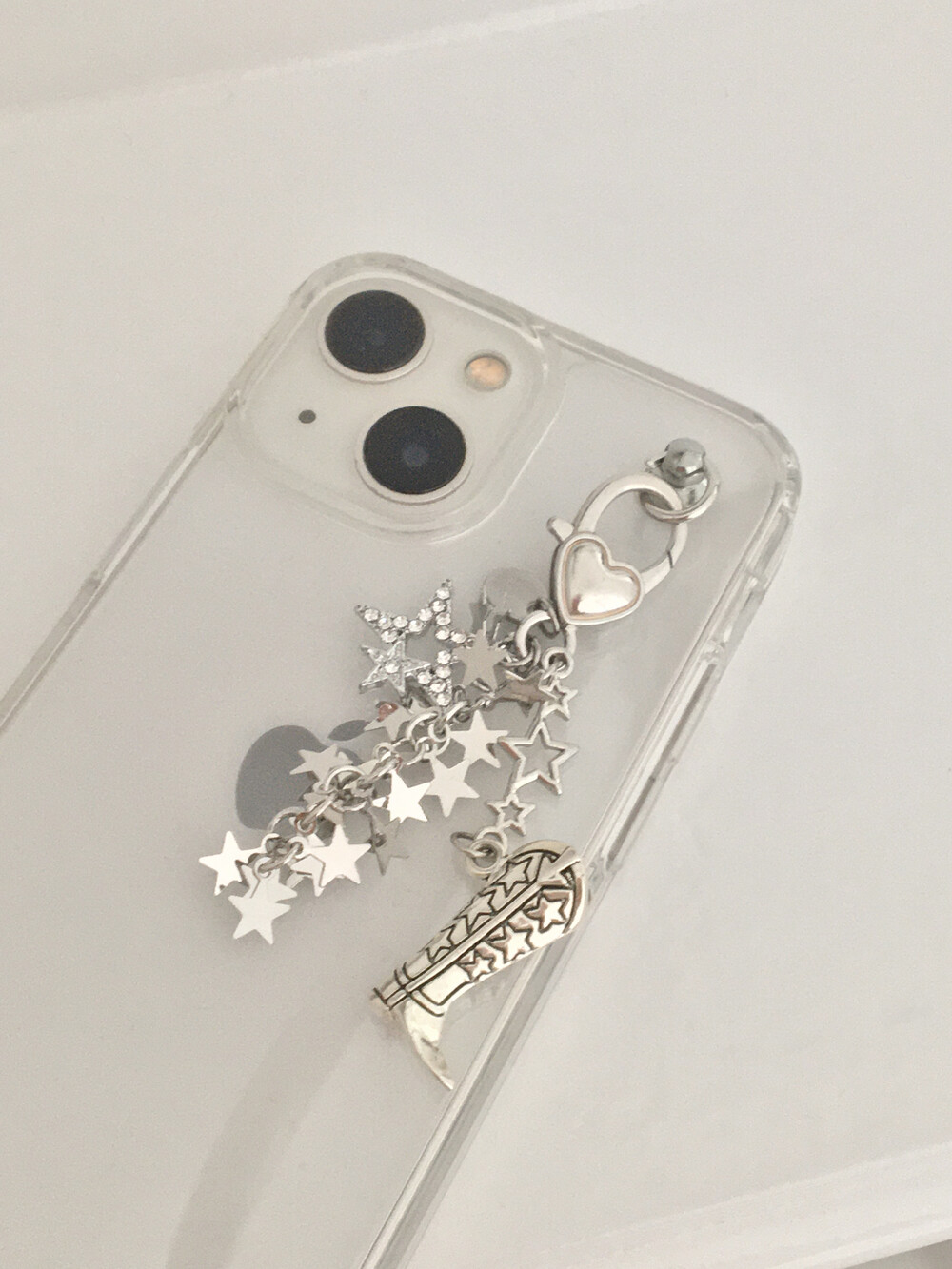 반짝이는 별과 웨스턴 부츠 참이 달린 키링입니다.