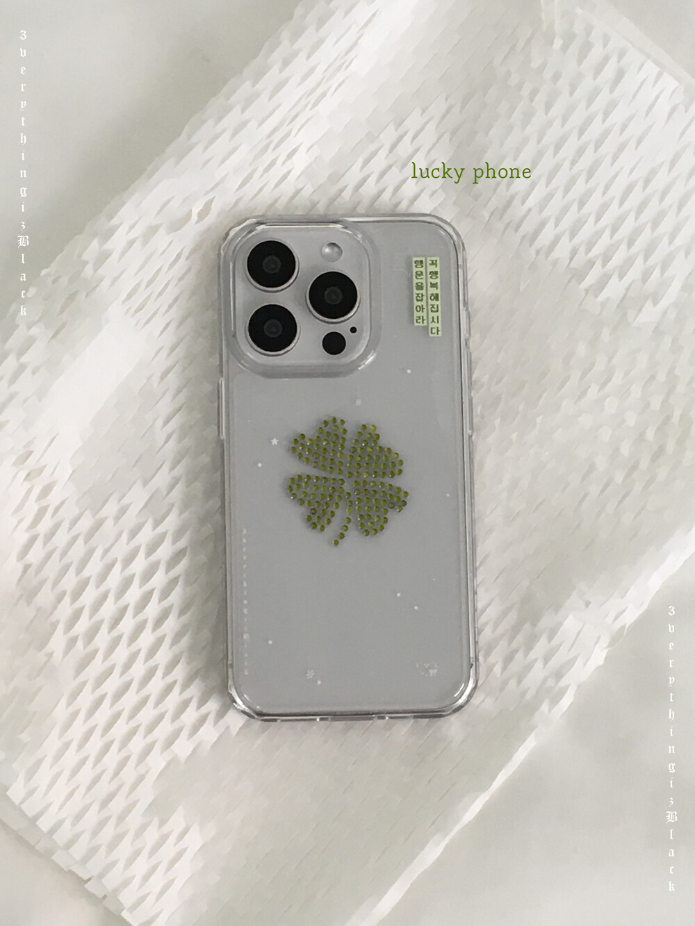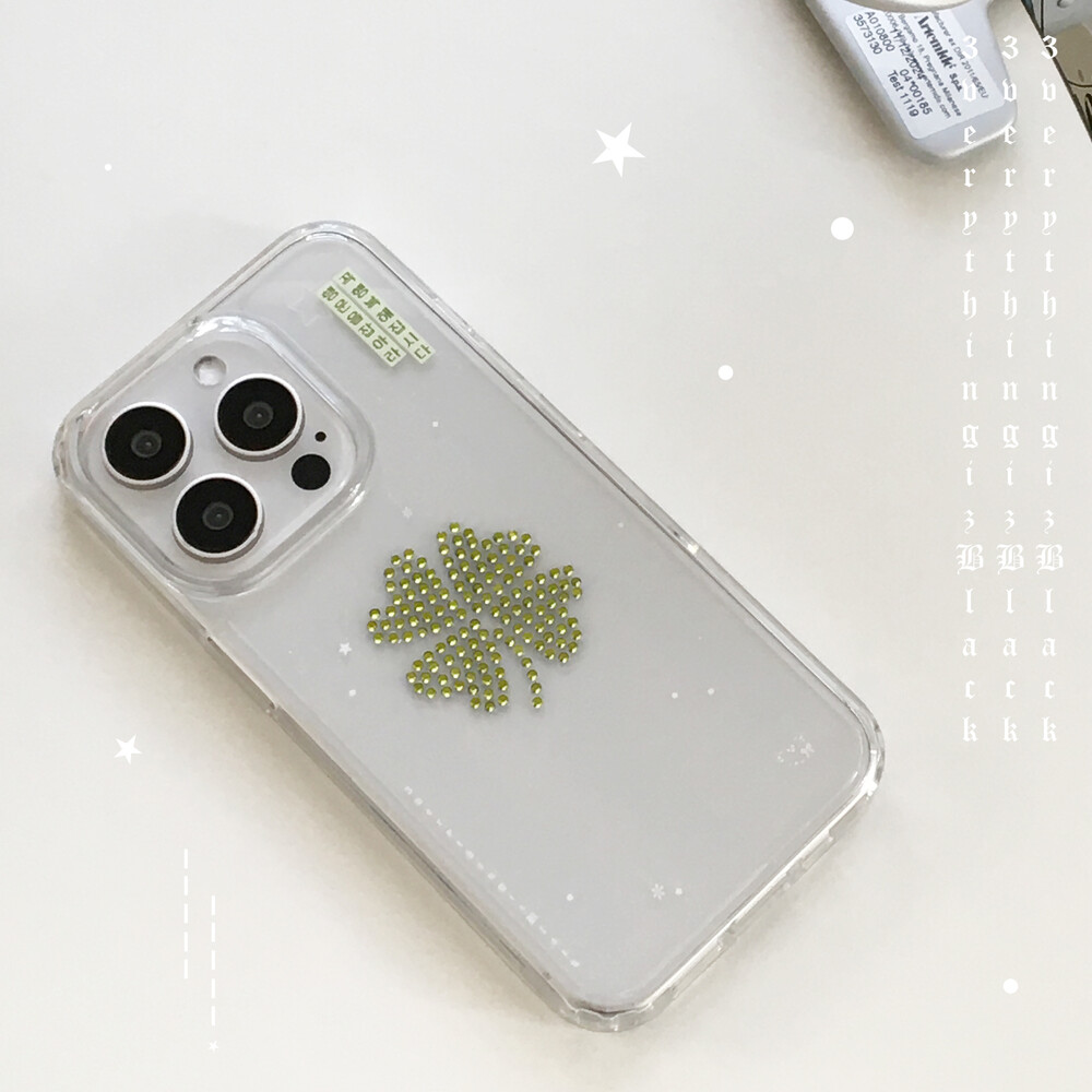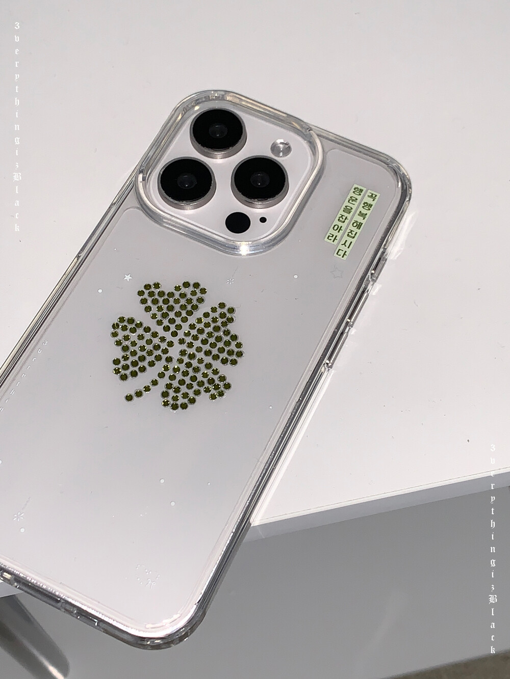 네잎클로버 큐빅과 귀여운 프린팅 젤하드 폰 케이스 입니다.
