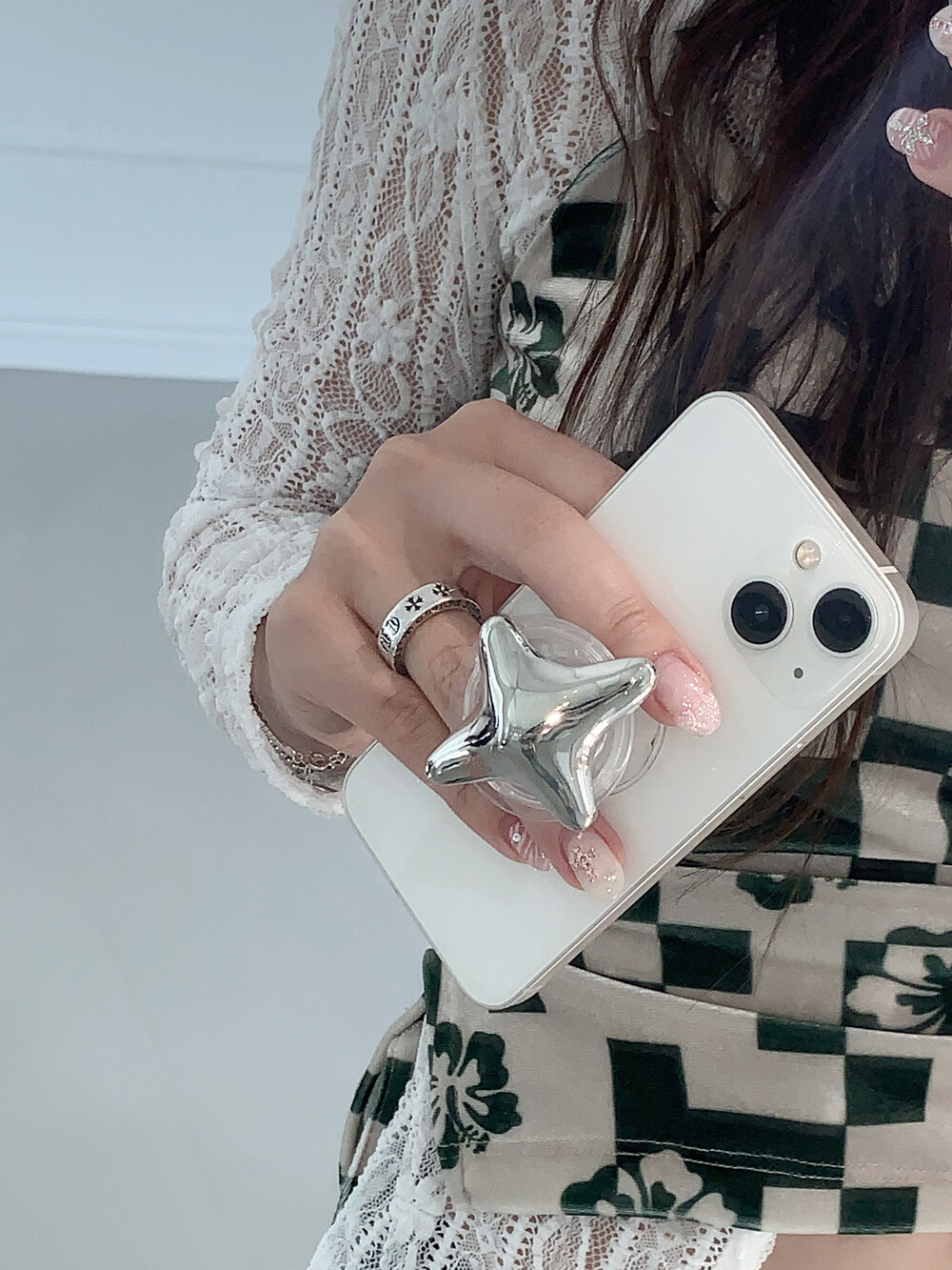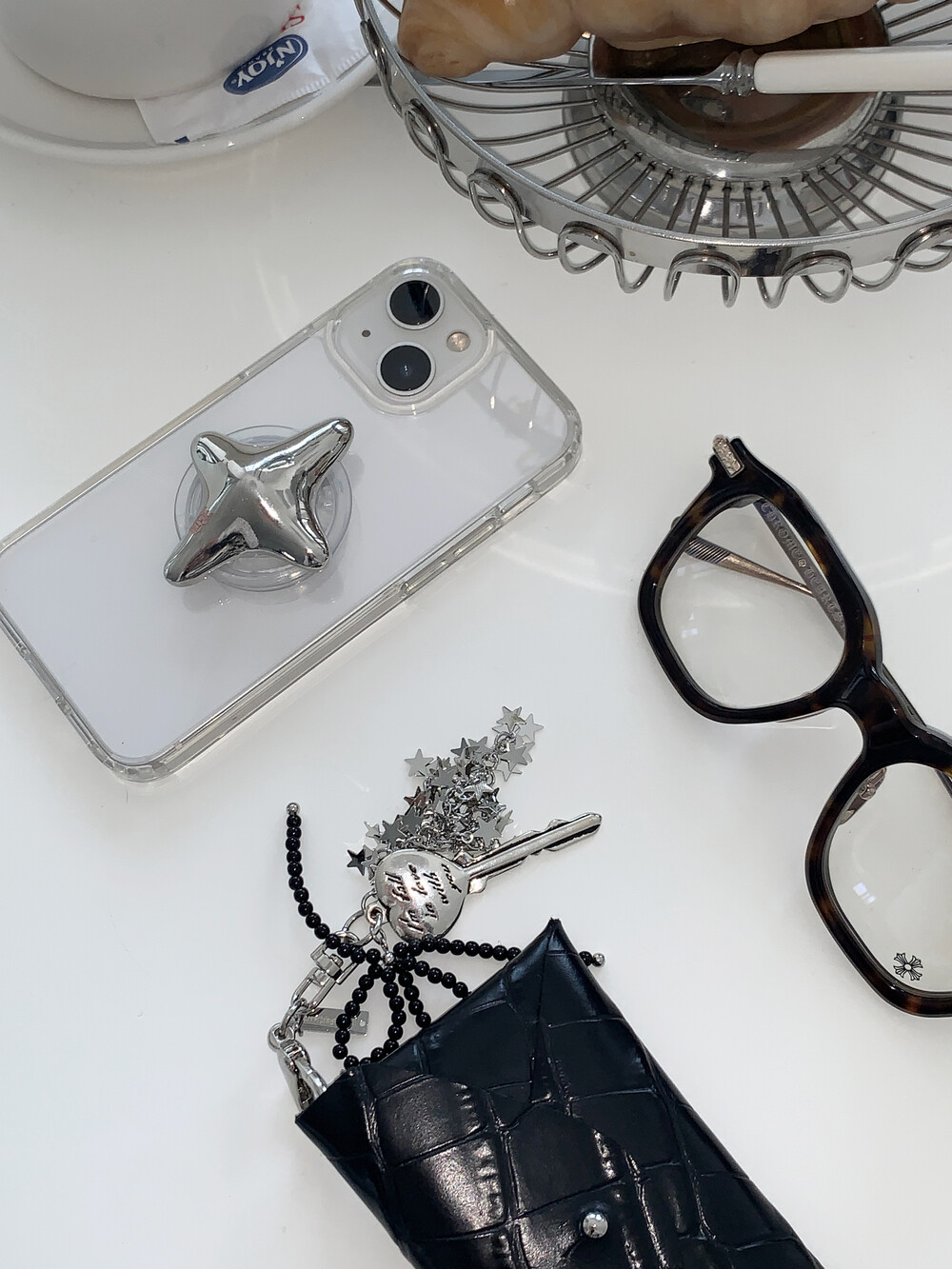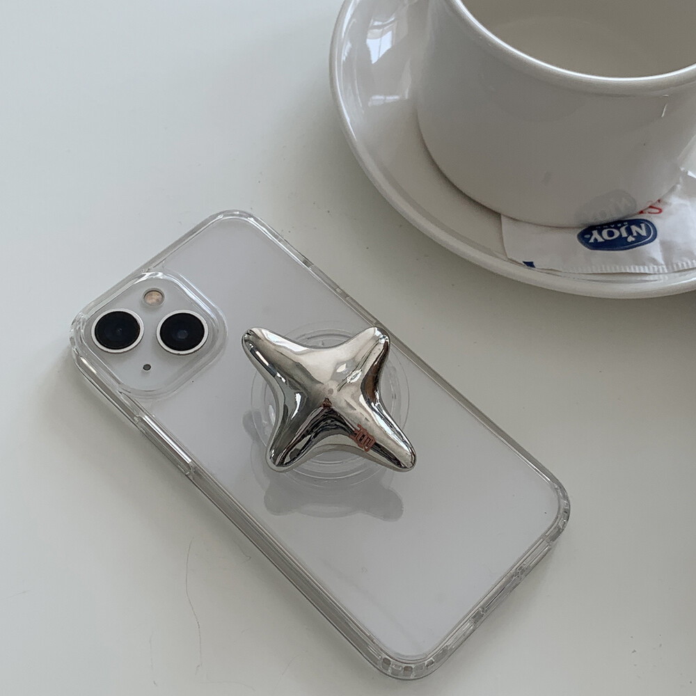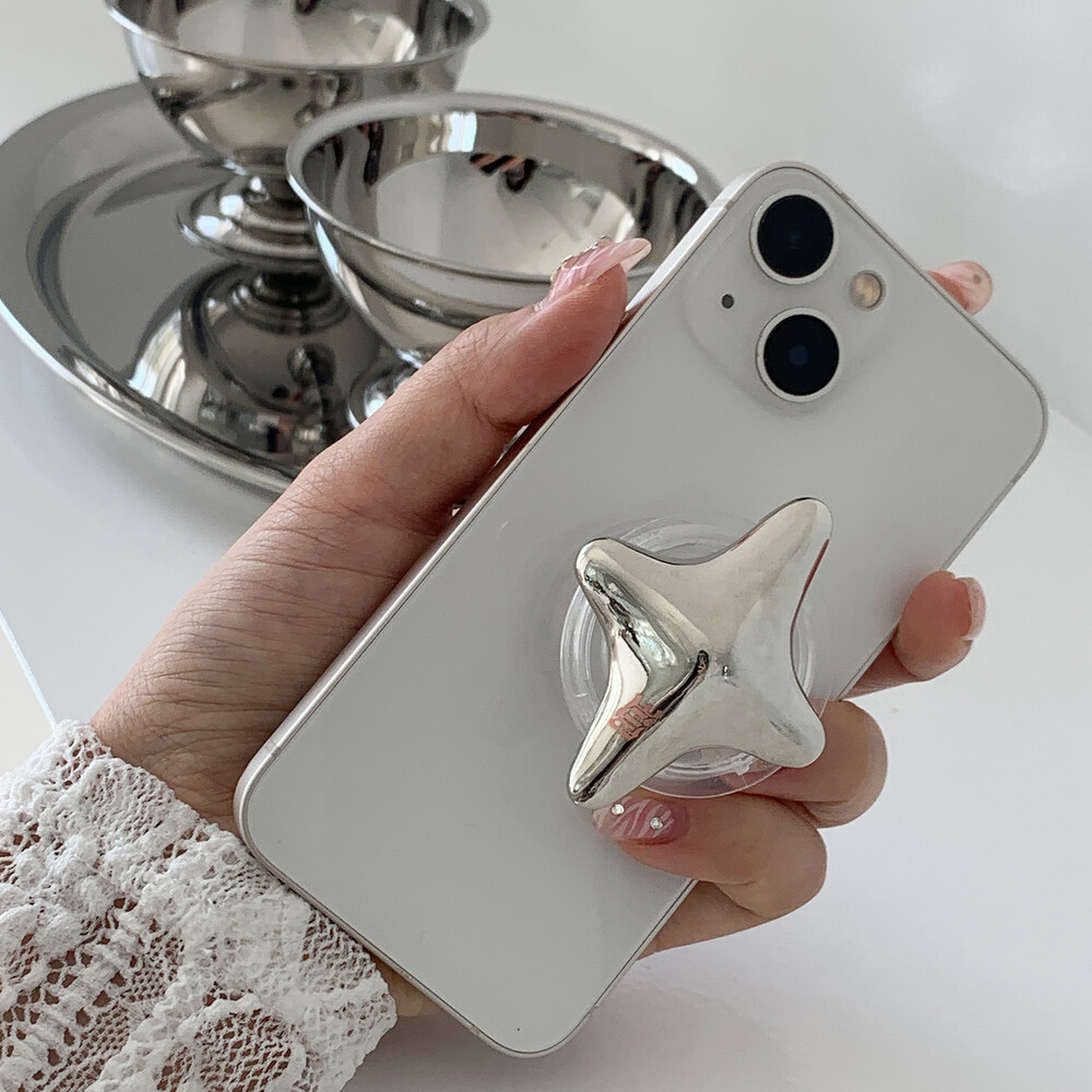 로고 각인이 되어있는 크롬 별 그립톡입니다.