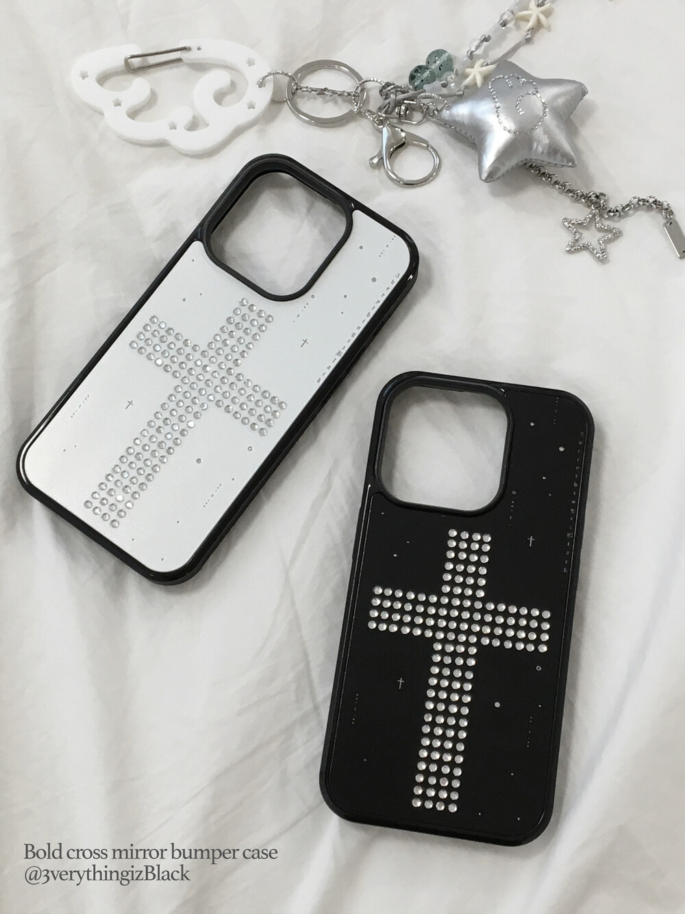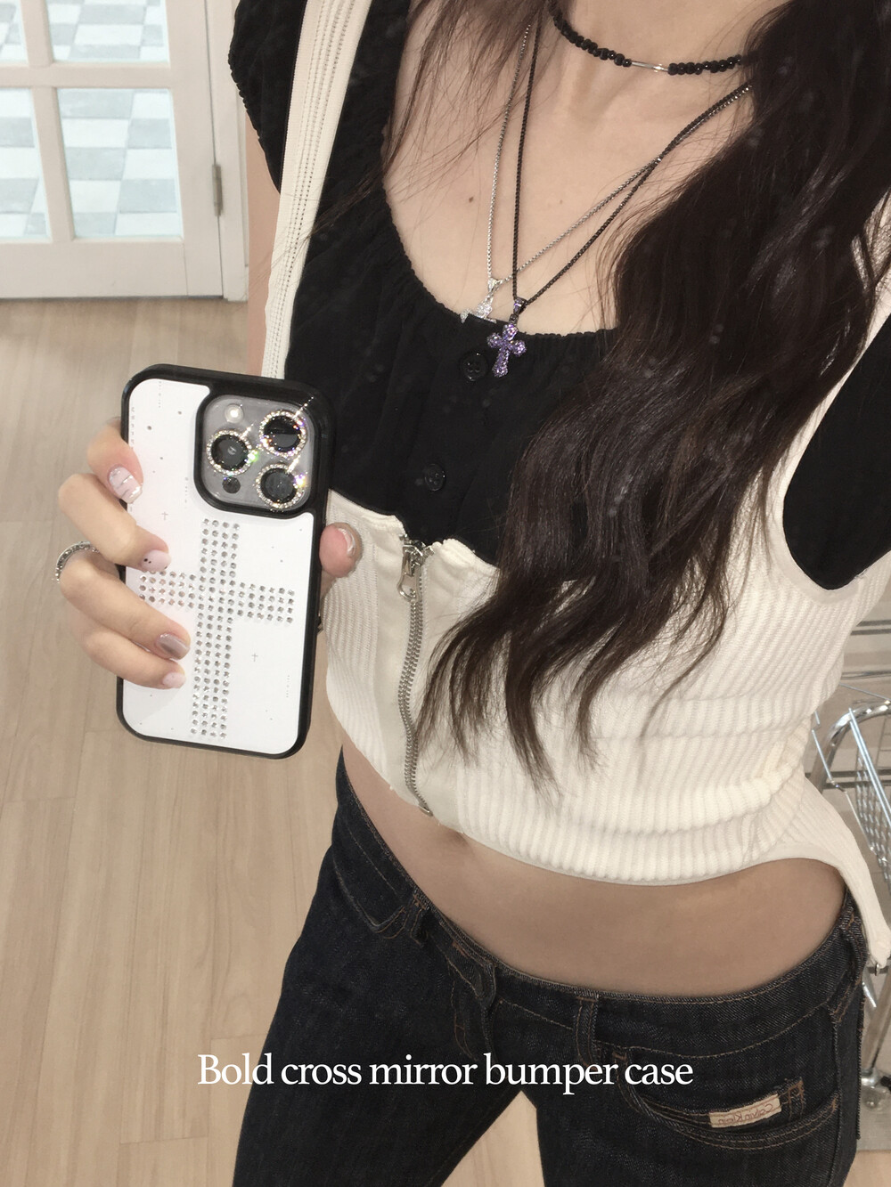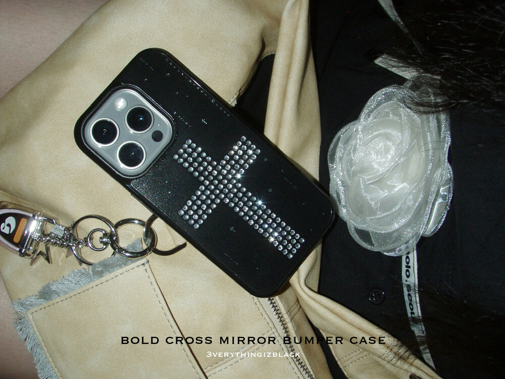 볼드한 크로스 큐빅에 디자인이 들어간 미러 범퍼케이스 입니다.