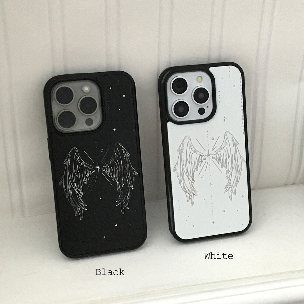 반짝이는 날개 디자인 미러 범퍼케이스 입니다.