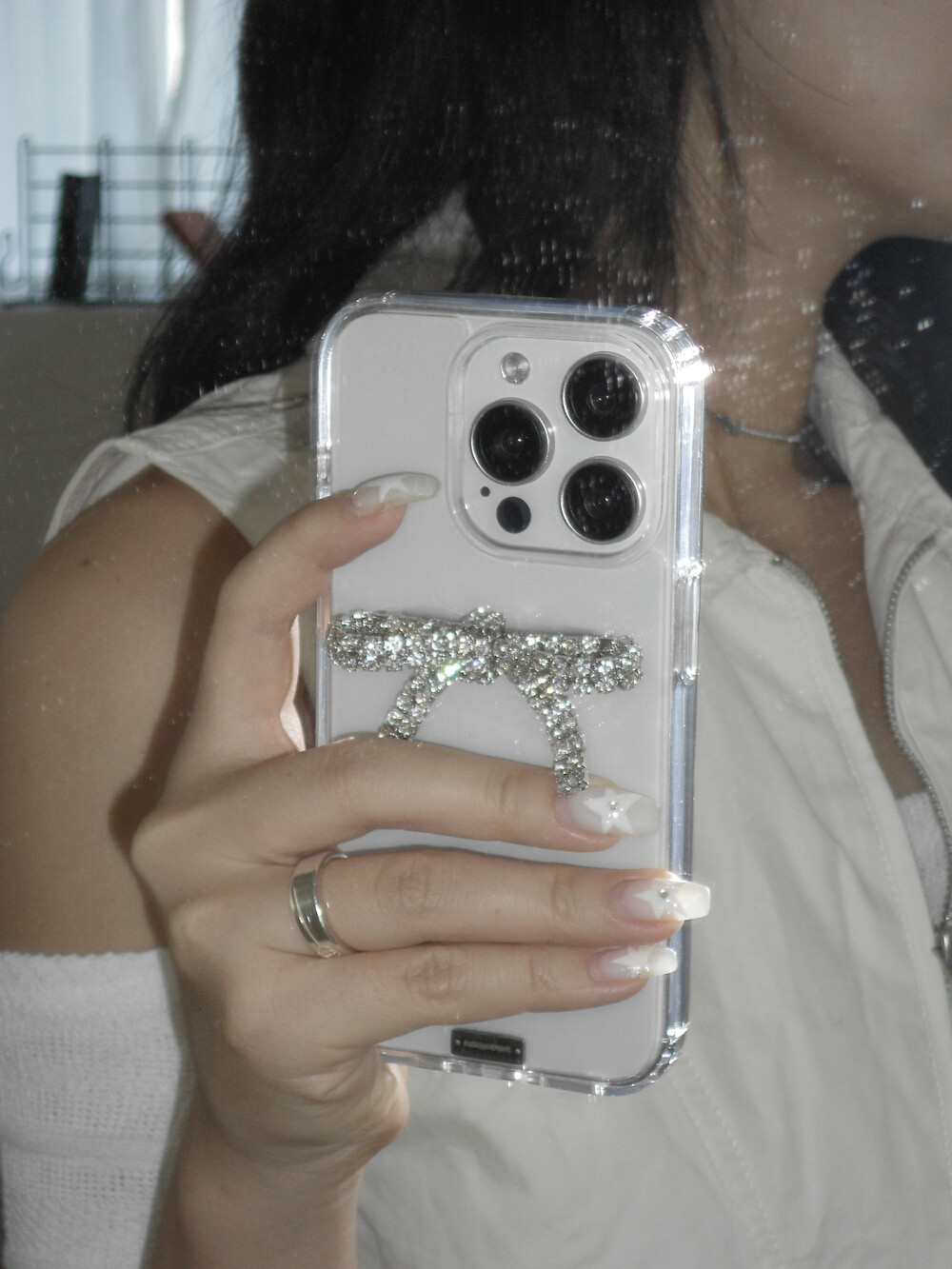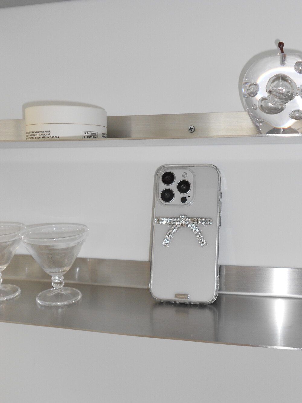 리본 큐빅 파츠가 붙여진 케이스 입니다.