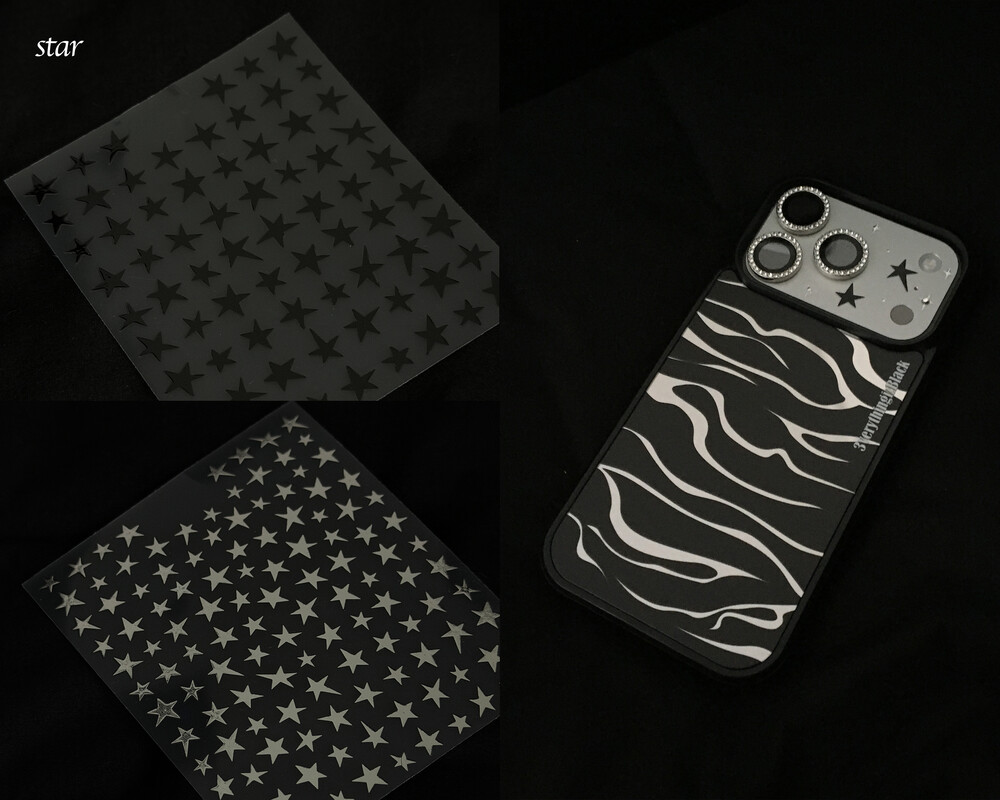 black, silver 두 가지 컬러의 자유 형태 별 스티커입니다
